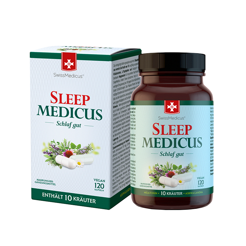 Het unieke voedingssupplement van SleepMedicus combineert de kracht van 10 zorgvuldig geselecteerde kruiden, L-tryptofaan en bio-opneembaar magnesium voor de ultieme nachtelijke ontspanning. SleepMedicus verlicht symptomen van stress, draagt bij aan volledige ontspanning, helpt tegen inslaapproblemen en verlicht slaapstoornissen. Bij regelmatig gebruik bevordert het product de concentratie, vitaliteit en fysieke prestaties. Het preparaat gaat vermoeidheid en uitputting tegen.
